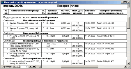 формирует и ведет все метрологические графики (поверки, калибровки,